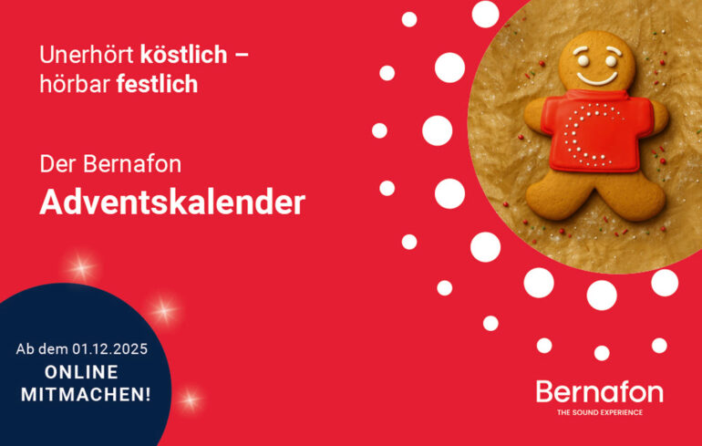 Bernafon lässt das Jahr mit einem digitalen Adventskalender für Hörakustikerinnen und Hörakustiker ausklingen. Ab dem 1. Dezember öffnet sich bis zum Heiligen Abend jeden Tag ein Türchen zu einer „klangvollen Überraschung“. Von „attraktiven Angeboten und geschmackvollen Gewinnen, die sich sehen und hören lassen können“ ist dazu bei Bernafon die Rede.